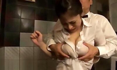 Asian huge boobs maid fucked hard at work