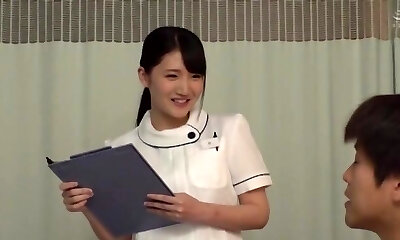 शरारती आदमी मांस रेलिंग द्वारा एक शानदार जापानी नर्स अस्पताल सोफे पर