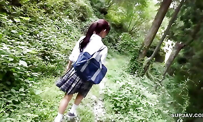 Asian Schoolgirl Frigged in Public!